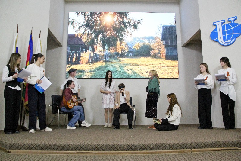 В рамках патриотического конкурса «Подвиг ради будущего» студенты первого курса специальности «Дизайн (по отраслям)» Сочинского института РУДН подготовили театрализованную постановку, посвященную жизни и подвигу Героя Советского Союза, поэта-фронтовика Эдуарда Асадова, потерявшего зрение в боях за Севастополь в 1944 году.