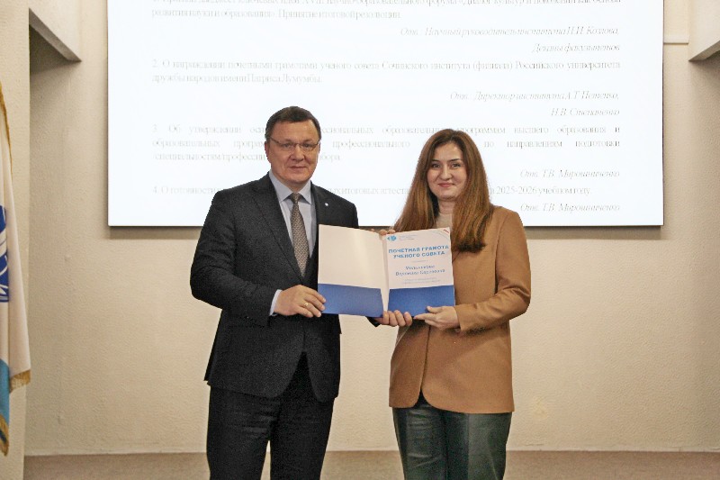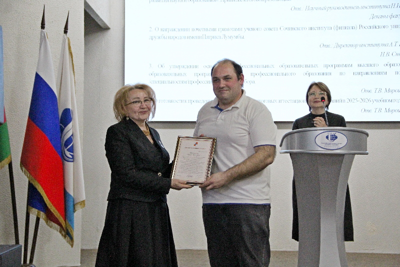 Почетными грамотами Ученого совета Сочинского института РУДН награждены: